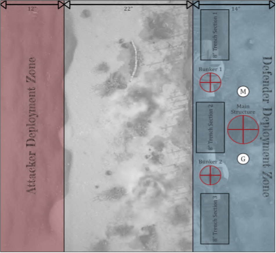 - Players will pick their deployment zone according to the Scenario rules. Some scenarios will have one player as the Attacker and the other as the Defender, with set deployment zones and special rules for each, while in other situations players will be more free to choose their deployment zone.