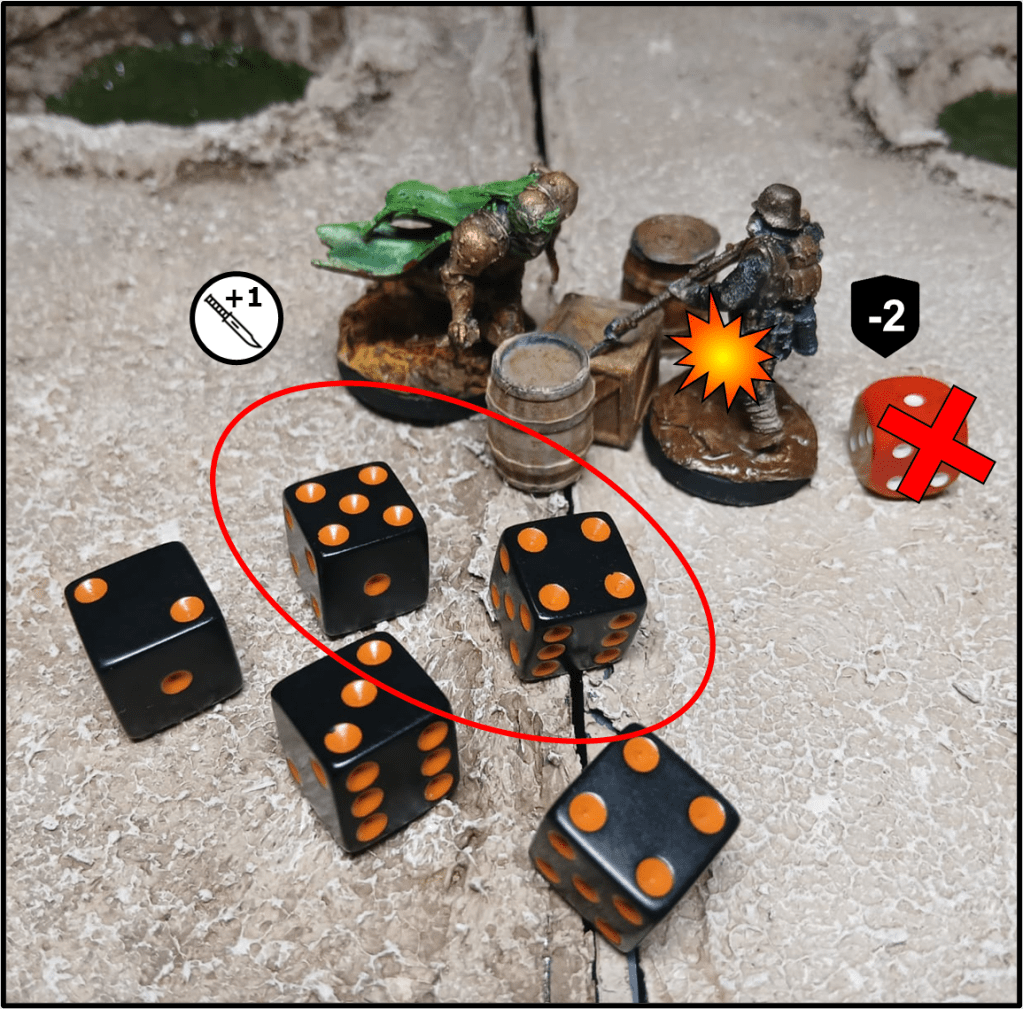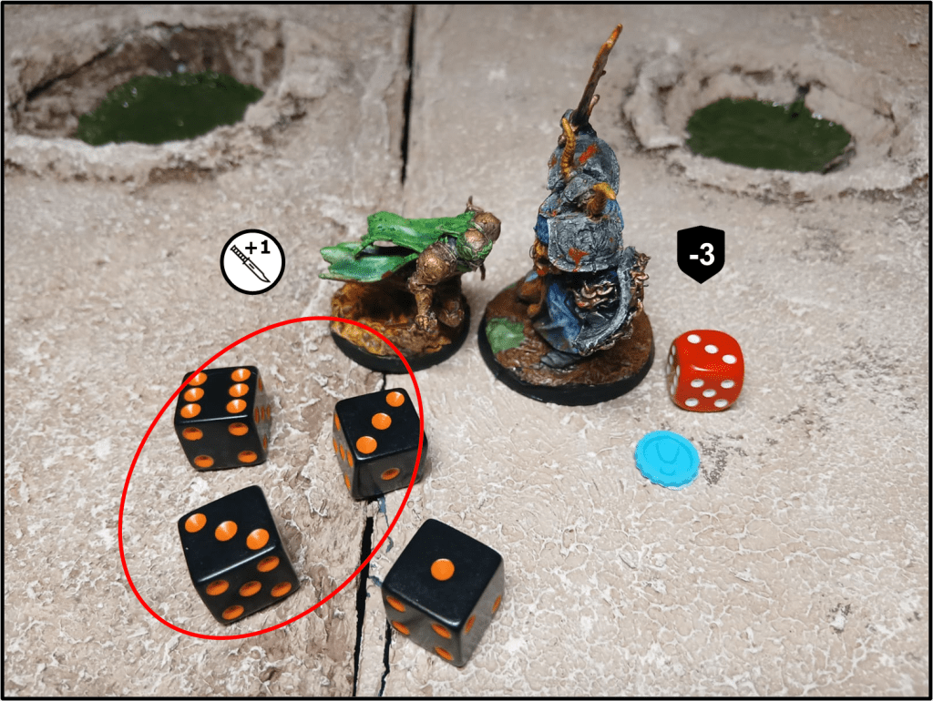 Notare che il SEGNALINO SAGUE sul Soldato Eretico non può essere usato per influenzare il tiro di attacco, ma potrà avere effetto sul successivo tiro pre ferire (v. Figura 6 più avanti).