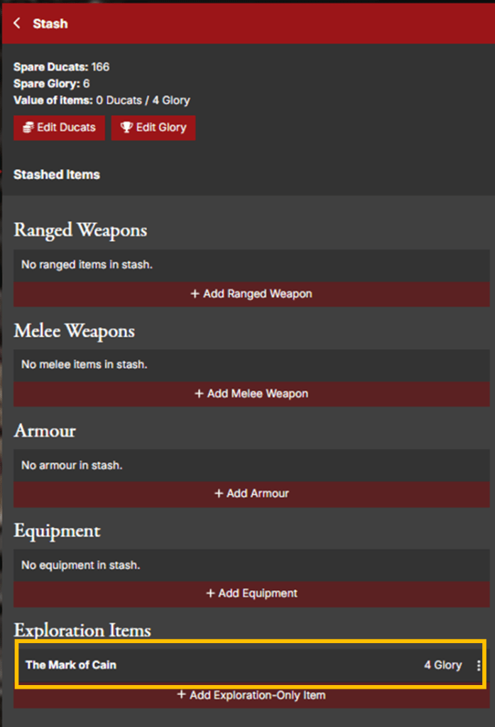 Armoury Glory Items appear in the equipment options of your models, and can be selected as long as you have enough Glory Points to spend.