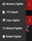 By clicking on the “more options” icon at the top right of the page, you’ll see a few options, including the possibility to print the warband, or to export it as a text file, or a .json file if you want to play on Tabletop Simulator.