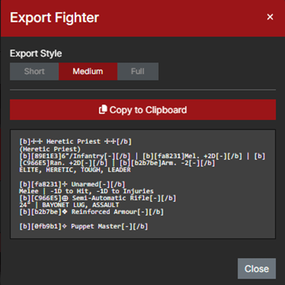By now, you should have all the tools you need to start building your first warband. Once you’ve done, you’ll probably want to print your list for playing or share it with your friends. The Trench Companion offers a few options.