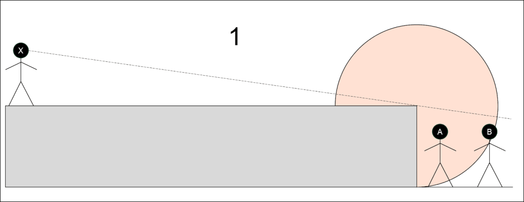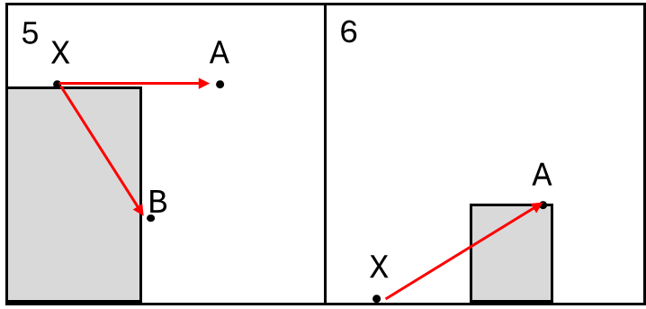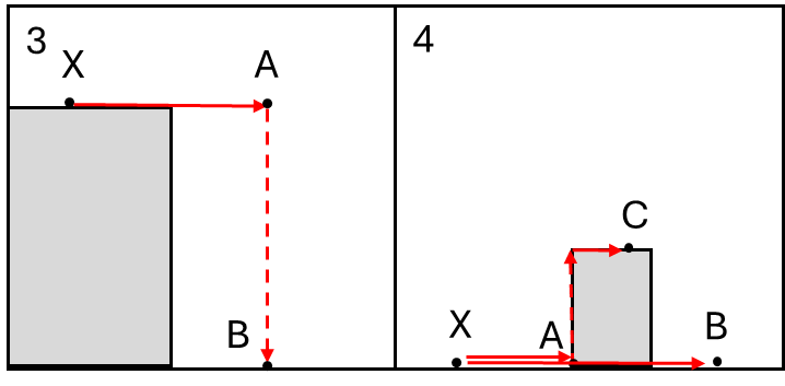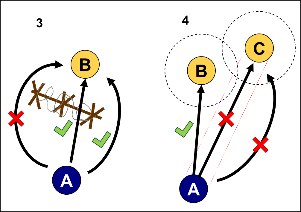 2) There is an obstacle between A and B. In this situation A must charge directly towards B and cannot avoid the Defended Obstacle.